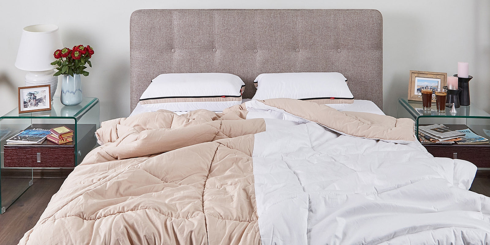 This dual-zoned comforter adapts to sleepers’ dynamic thermal temperatures throughout the sleep cycle. You and your partner can be together and still experience customized comfort on your half of the bed.