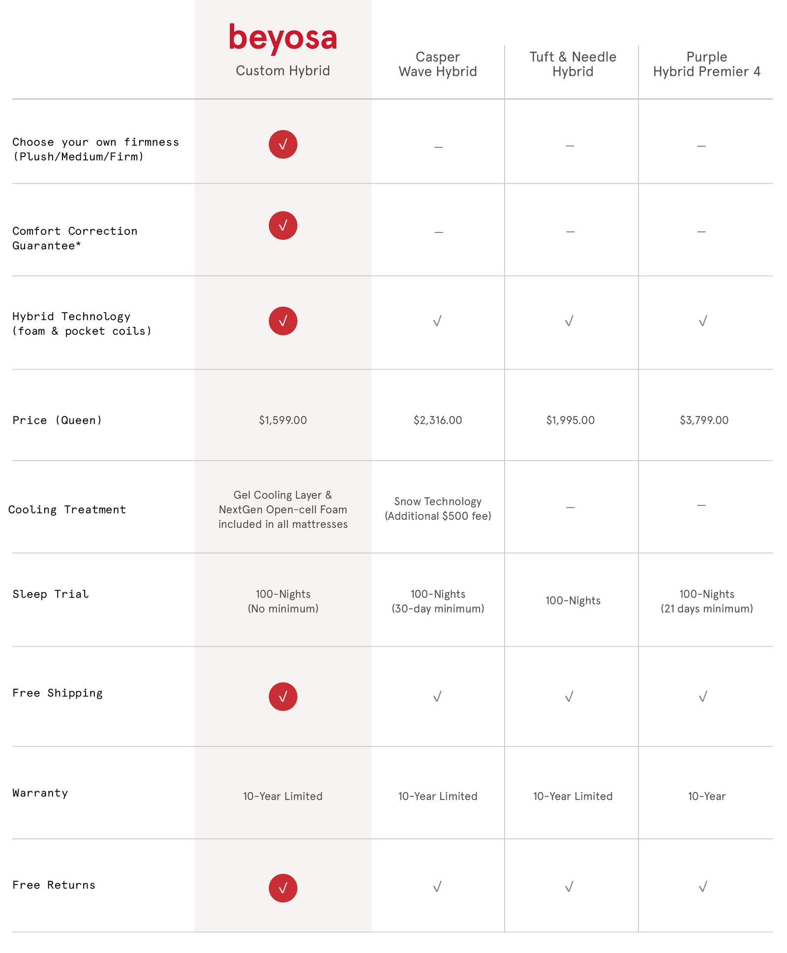 Your comfort is our top priority, which is why we offer a ten year limited warranty. With a 100-day trial period, 0% financing, free delivery to most states, our Comfort Correction Guarantee, and a long-term warranty, Beyosa offers a risk-free, customizable option to set you up for your best night’s sleep.